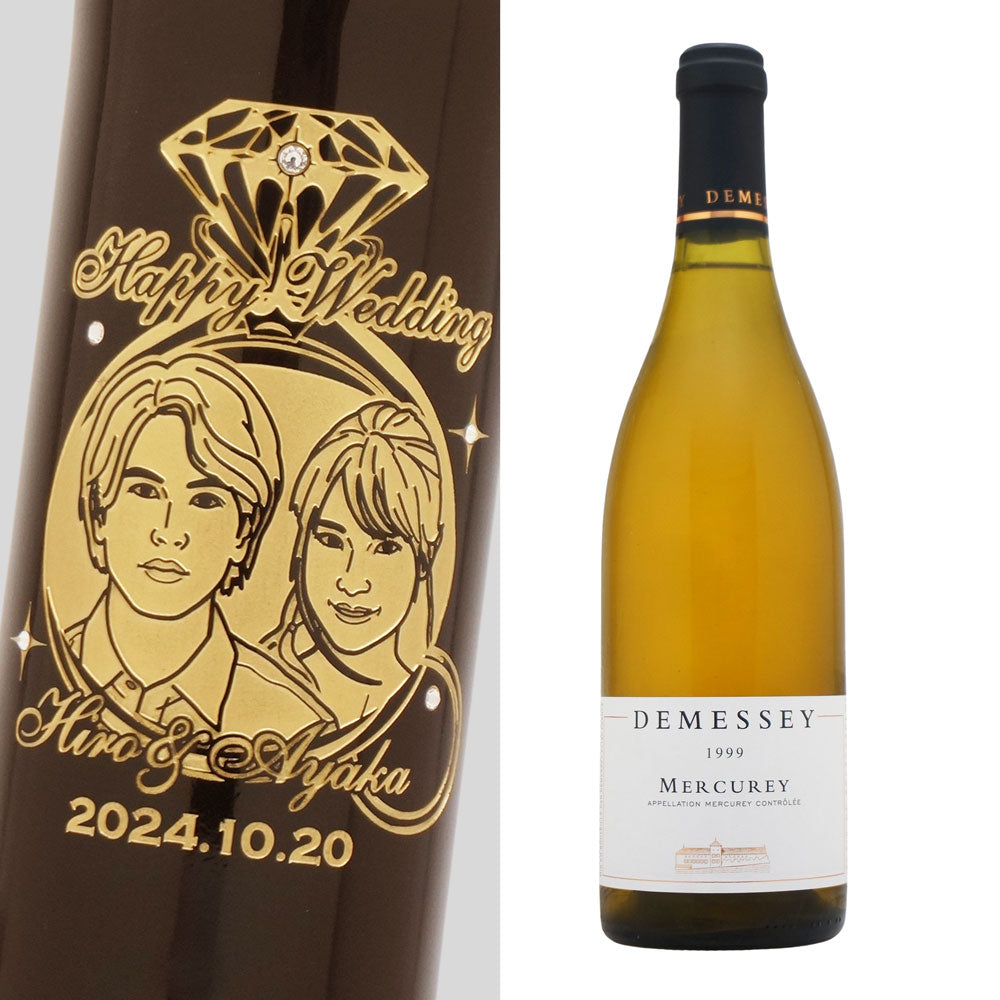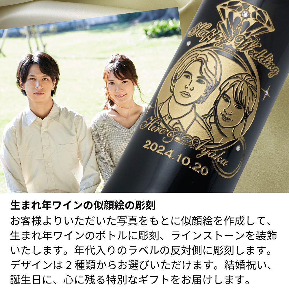 1999年 結婚記念年 / 誕生日 生まれ年ワイン 名前 似顔絵の彫刻 木箱入 平成11年