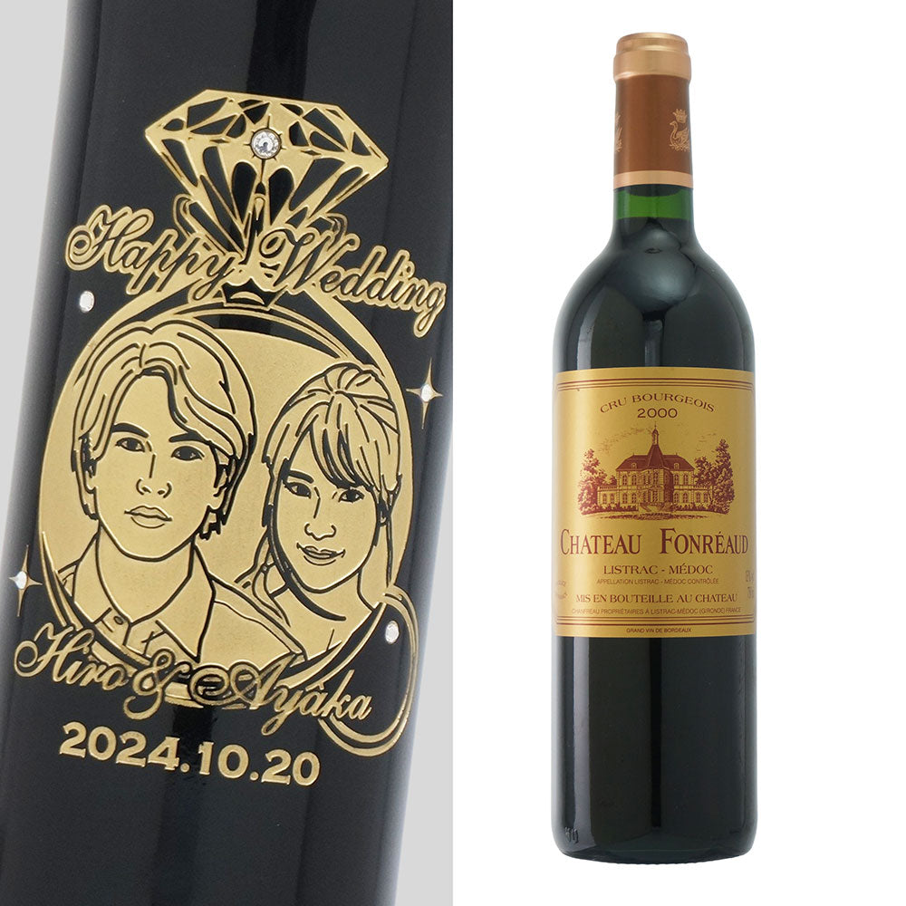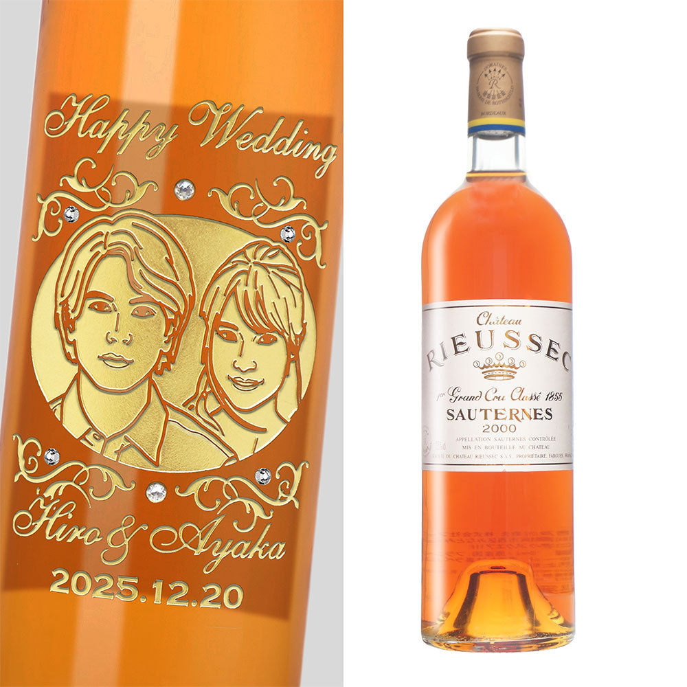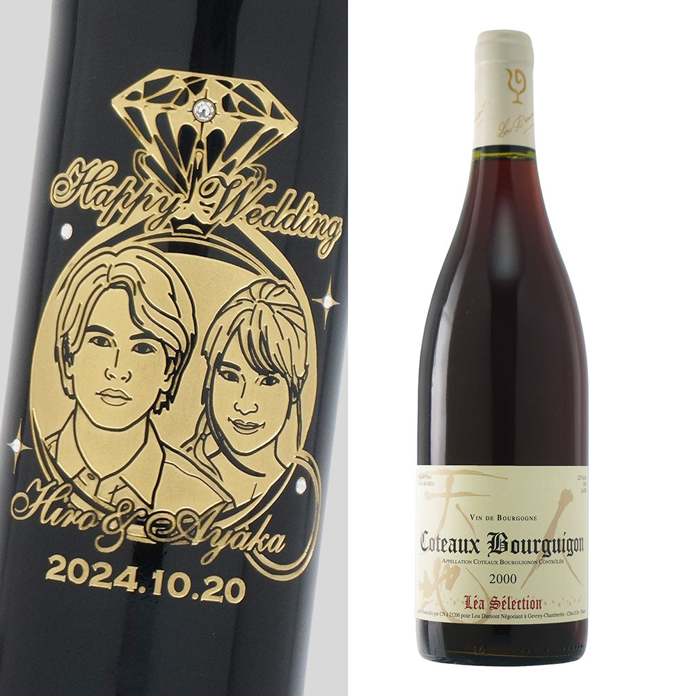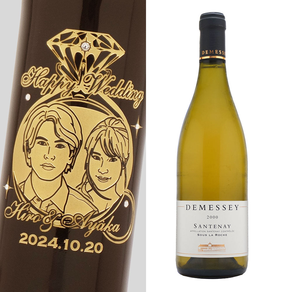 2000年 結婚記念年 / 誕生日 生まれ年ワイン 名前 似顔絵の彫刻 木箱入 平成12年