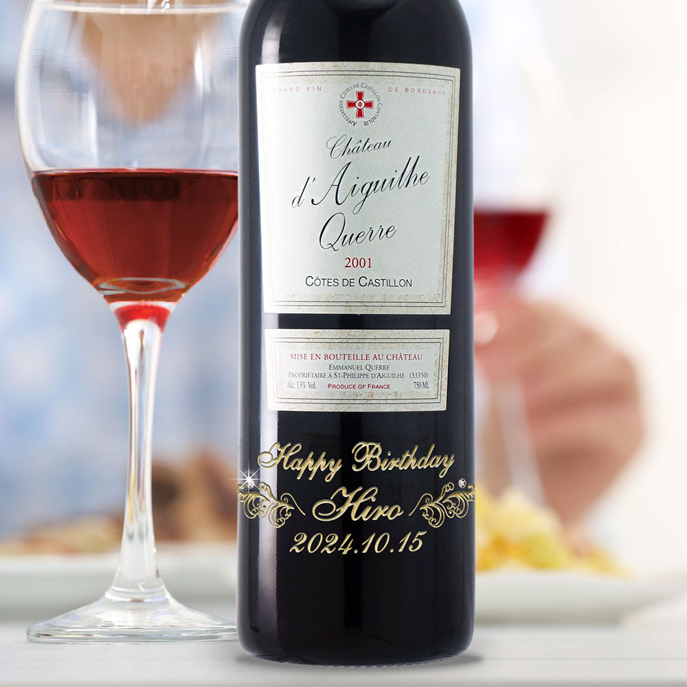 お名前などが刻まれたワインやグラスは、ずっと心に残るプレゼントだと思います。