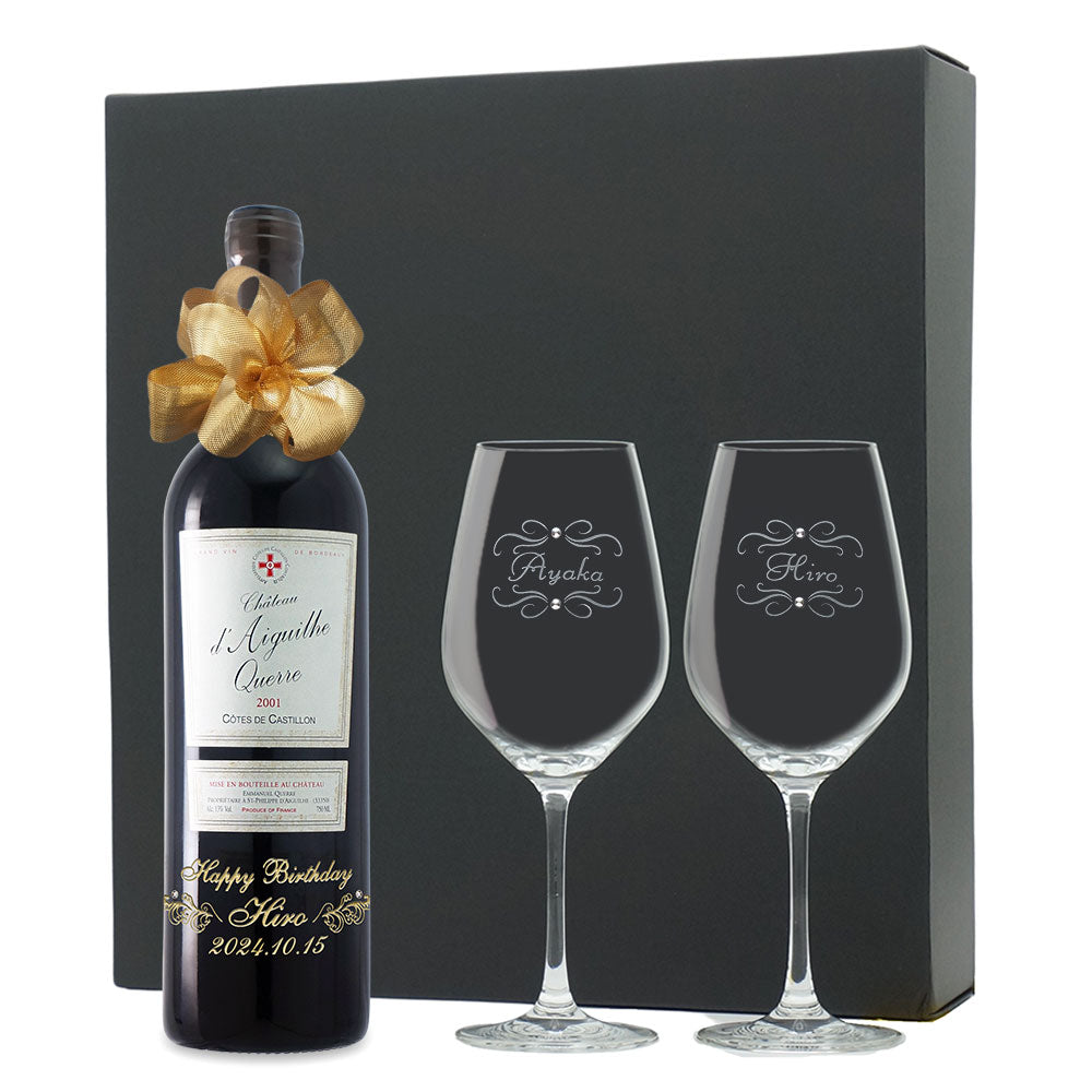 2001年 生まれ年ワイン ペアグラスのセット 名前入り彫刻のお酒 平成13年