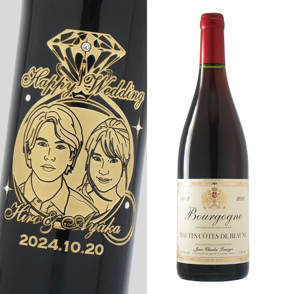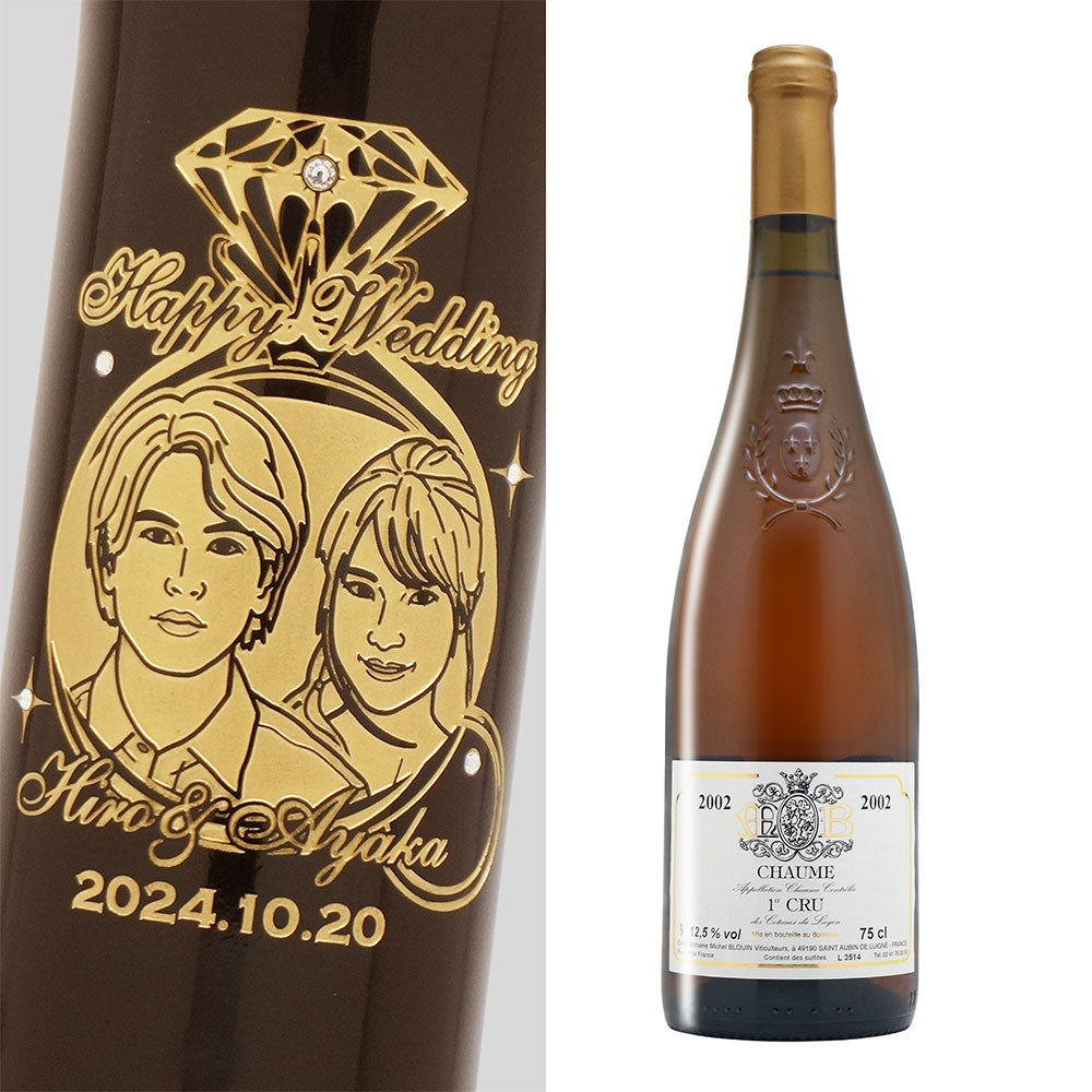2002年 結婚記念年 / 誕生日 生まれ年ワイン 名前 似顔絵の彫刻 木箱入 平成14年