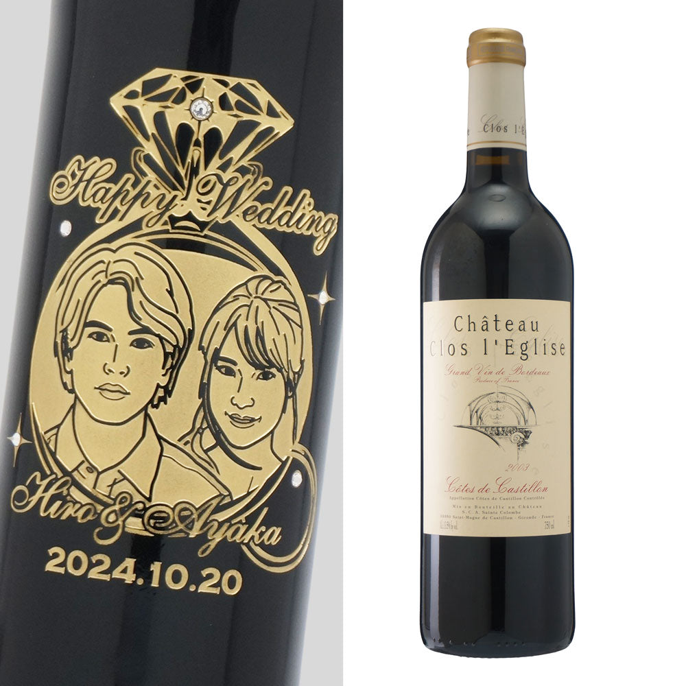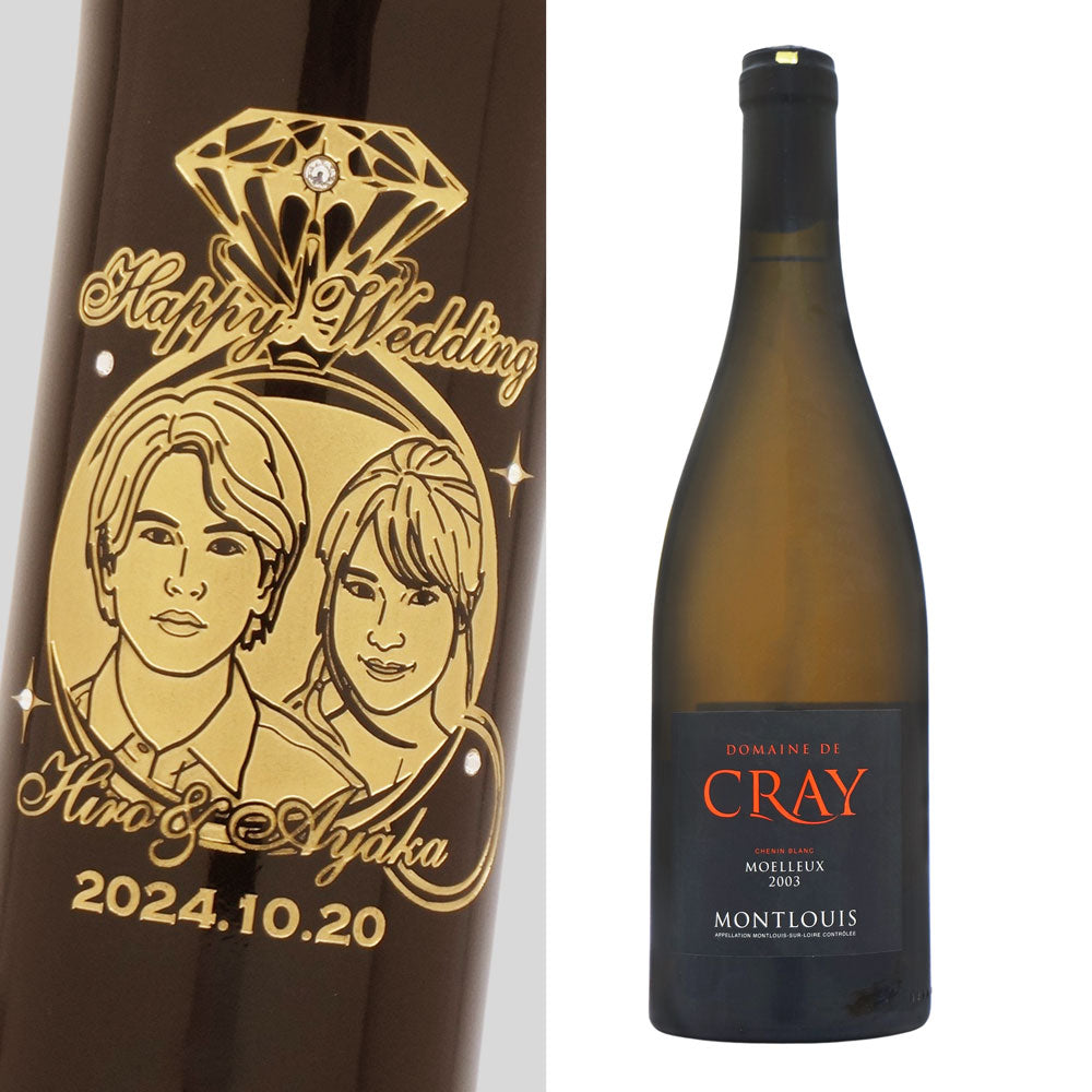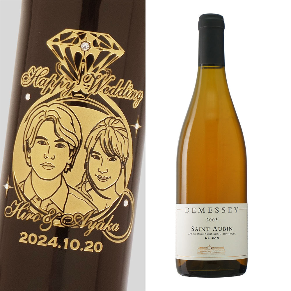 2003年 結婚記念年 / 誕生日 生まれ年ワイン 名前 似顔絵の彫刻 木箱入 平成15年
