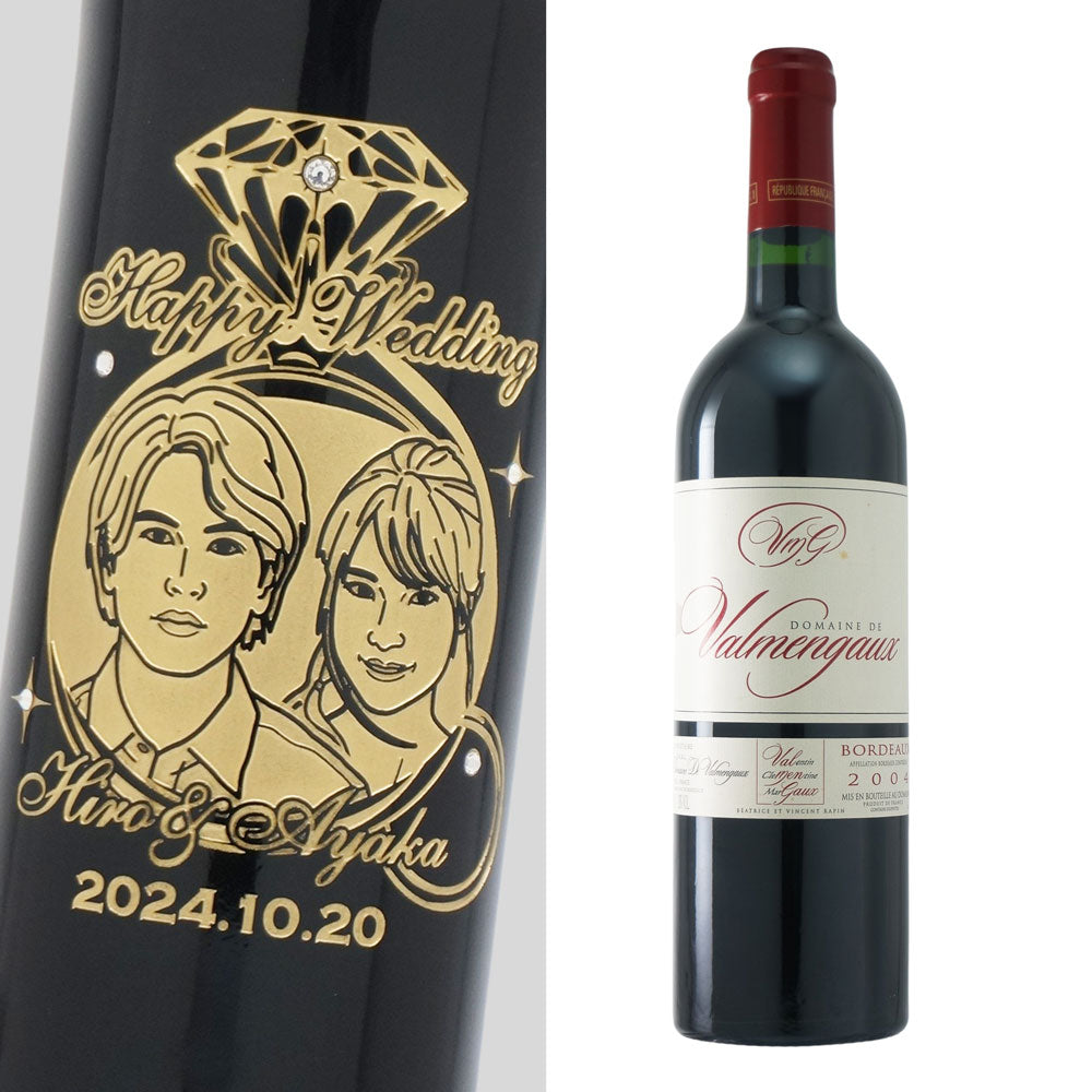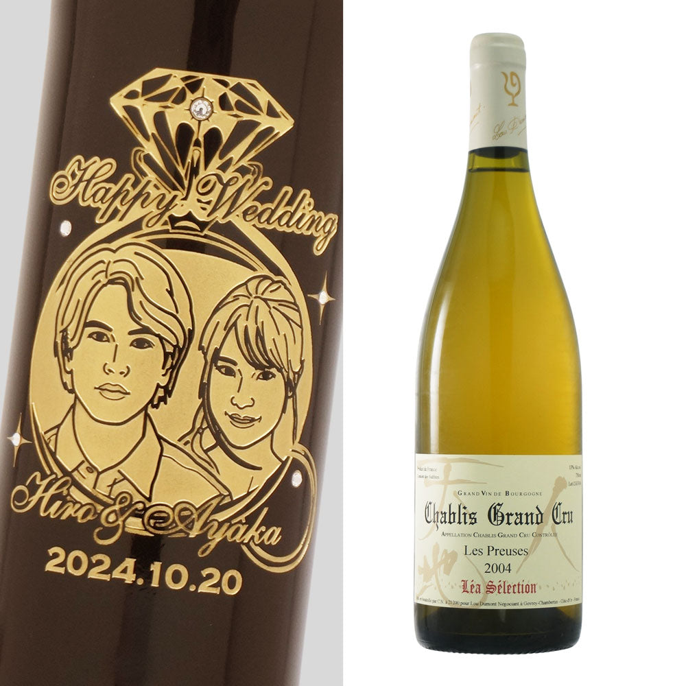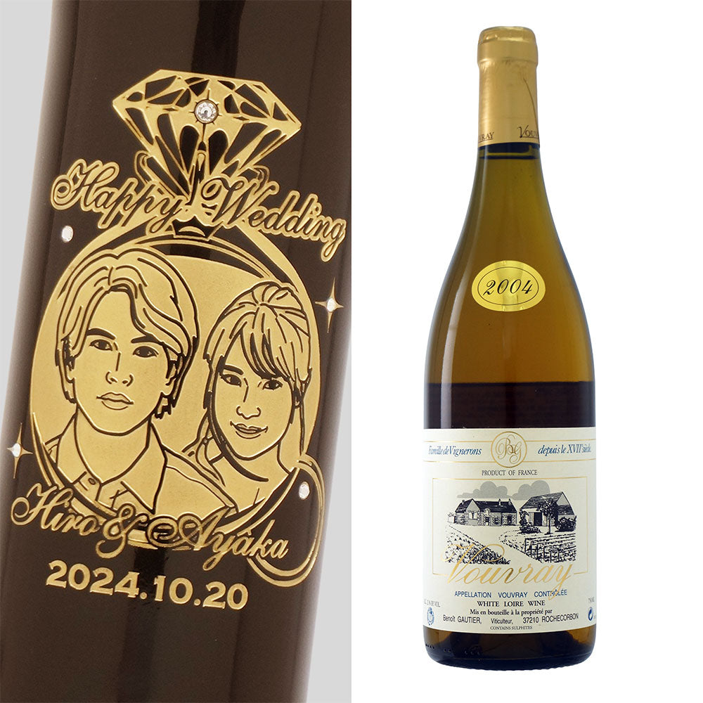 2004年 結婚記念年 / 誕生日 生まれ年ワイン 名前 似顔絵の彫刻 木箱入 平成16年