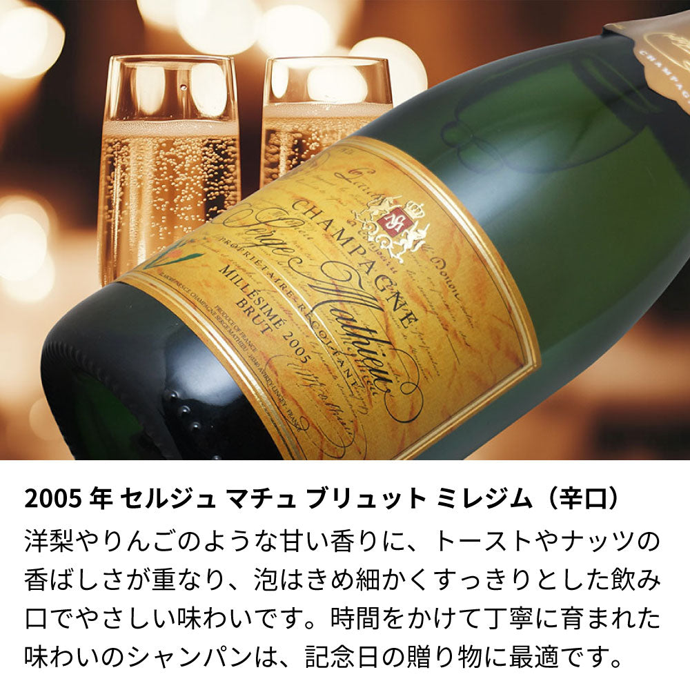 2005年に収穫されたブドウで醸造して熟成されたシャンパンを贈りませんか。