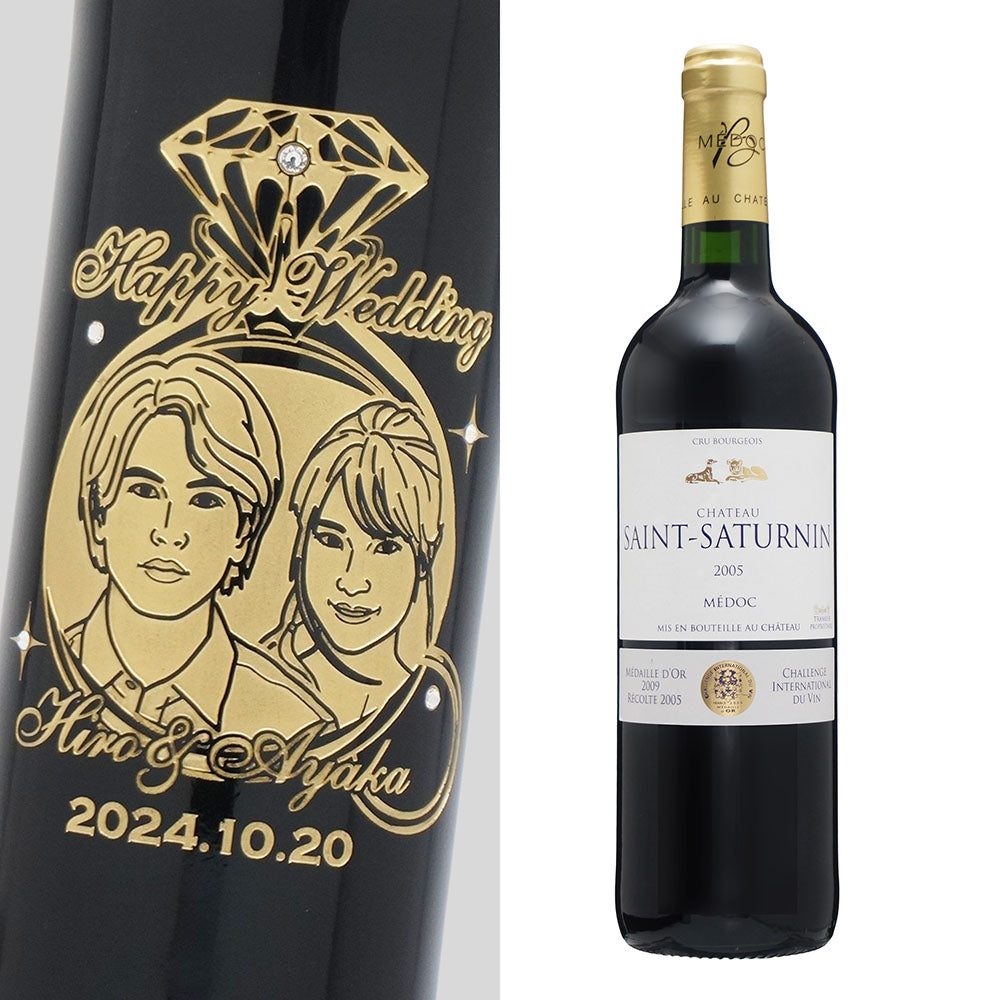 2005年 結婚記念年 / 誕生日 生まれ年ワイン 名前 似顔絵の彫刻 木箱入 平成17年