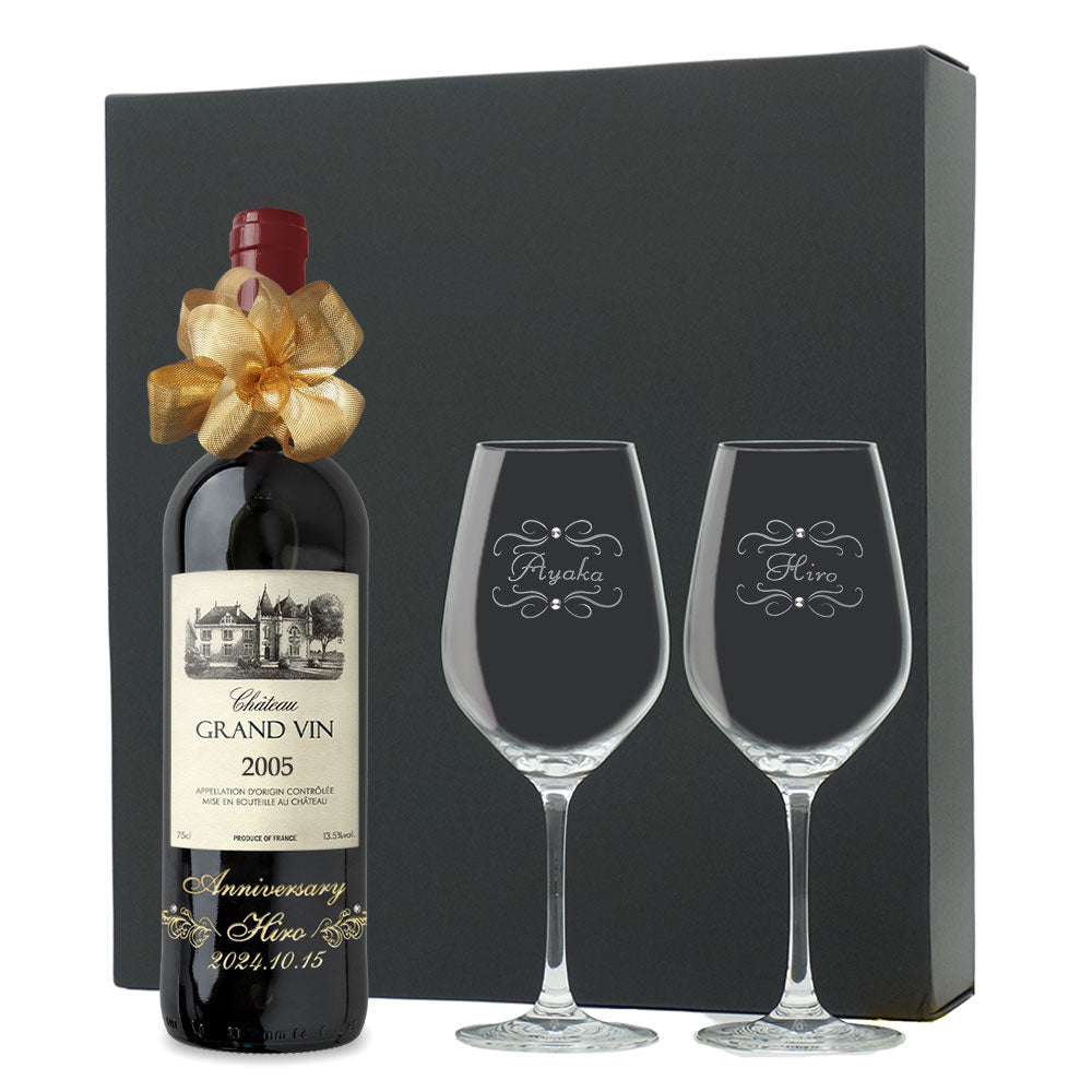2005年 生まれ年ワイン ペアグラスのセット 名前入り彫刻のお酒 平成17年 20歳