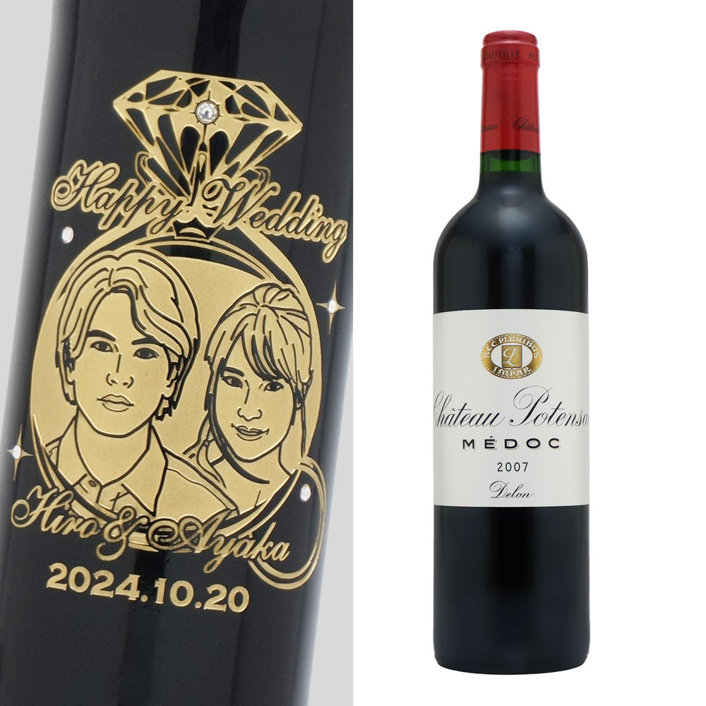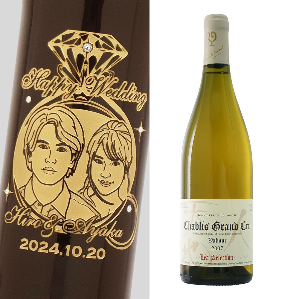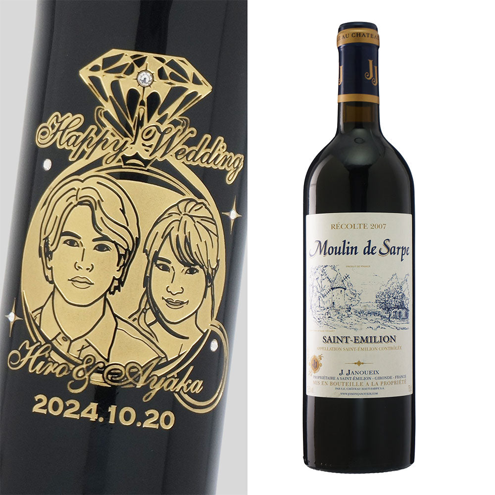 2007年 結婚記念年 / 誕生日 生まれ年ワイン 名前 似顔絵の彫刻 木箱入 平成19年