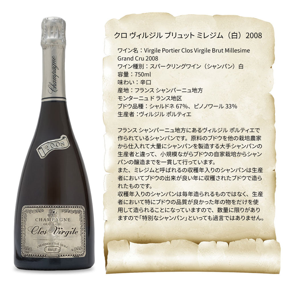 ワイン名:Virgile Portier Clos Virgile Brut Millesime Grand Cru 2008