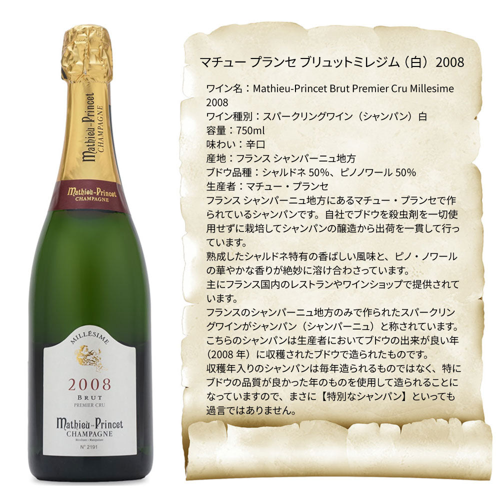 ワイン名:Mathieu-Princet Brut Premier Cru Millesime 2008