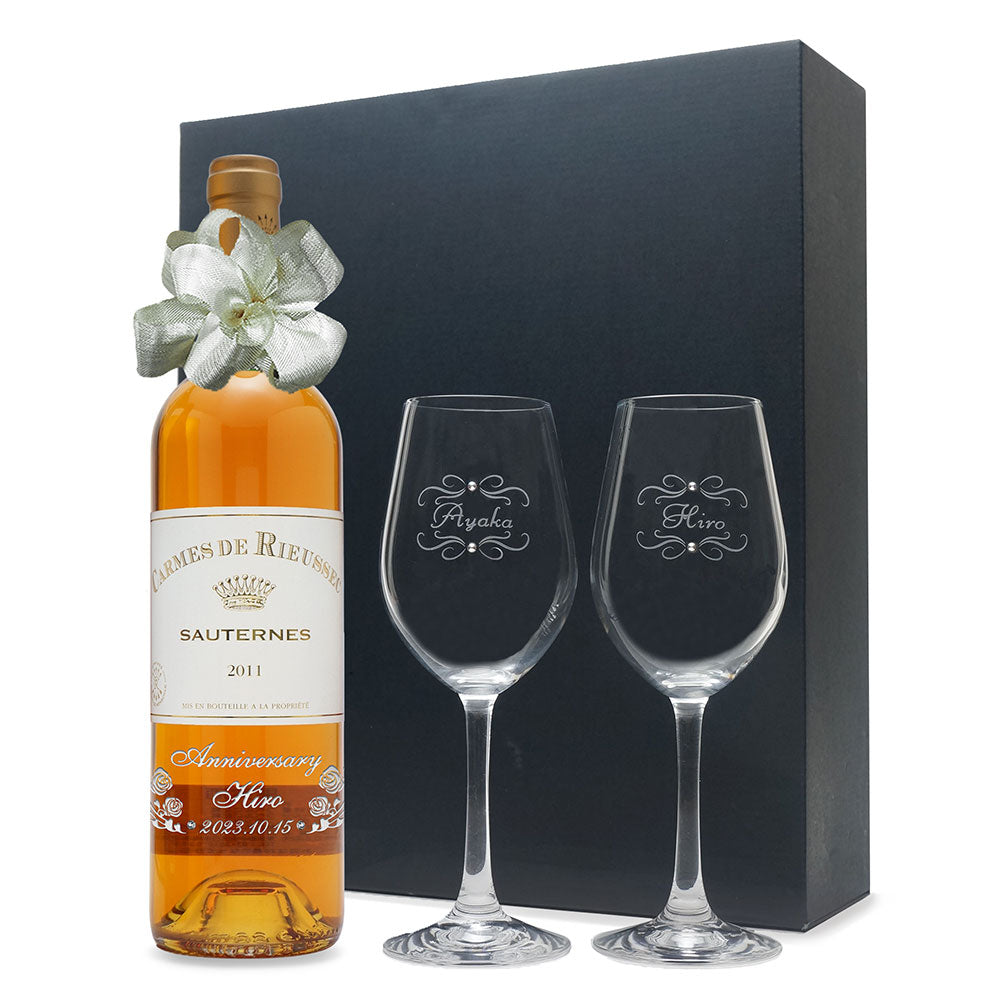 2011年に収穫されたブドウで作られた生まれ年ワインに、名前やメッセージを彫刻し、ペアグラスとともに贈るオーダーメイドギフト。心に残る、感動のプレゼントです。