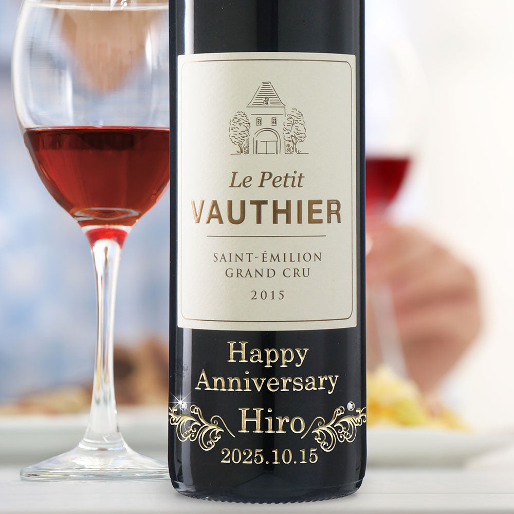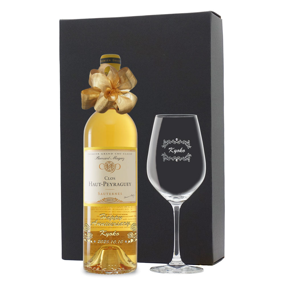 2015年に収穫されたブドウで作られた生まれ年ワインに、名前やメッセージを彫刻し、ワイングラスとともに贈る特別なオーダーメイドギフト。節目の年や記念日に、大切な方への感動を演出します。