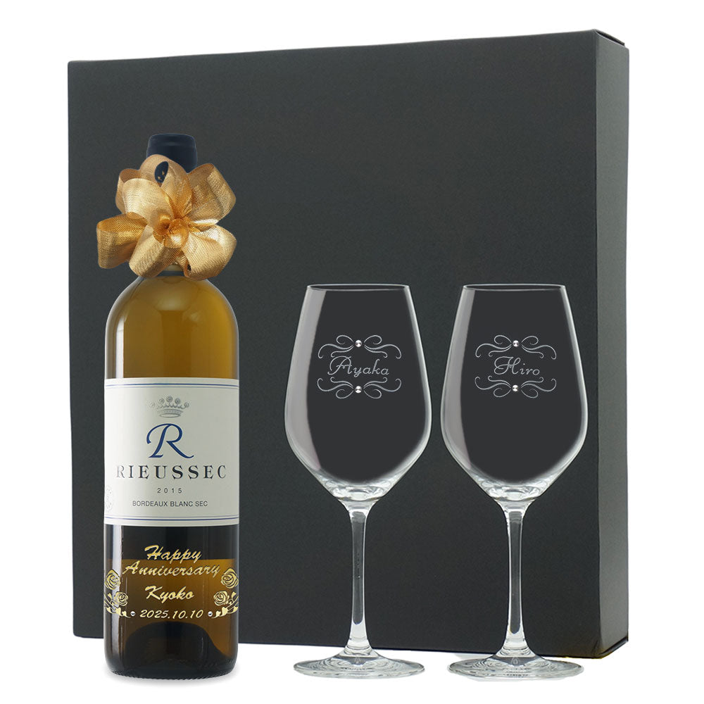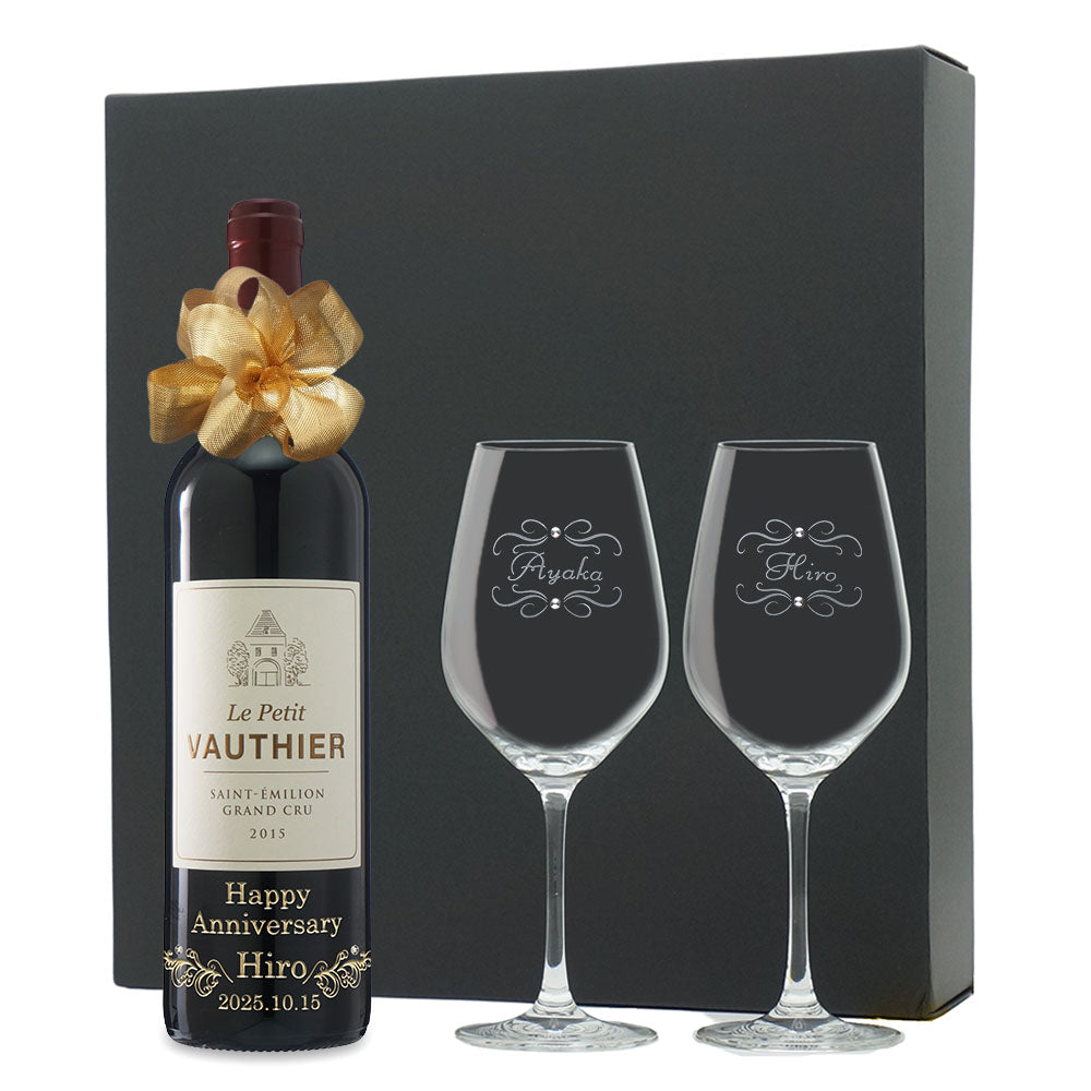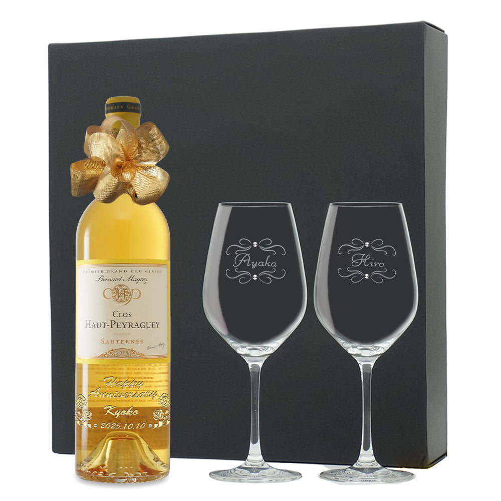 2015年に収穫されたブドウで作られた生まれ年ワインに、名前やメッセージを彫刻し、ペアグラスとともに贈るオーダーメイドギフト。心に残る、感動のプレゼントです。
