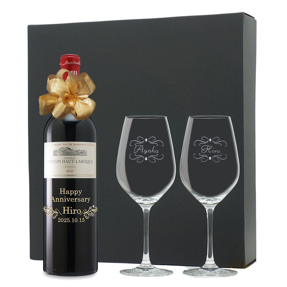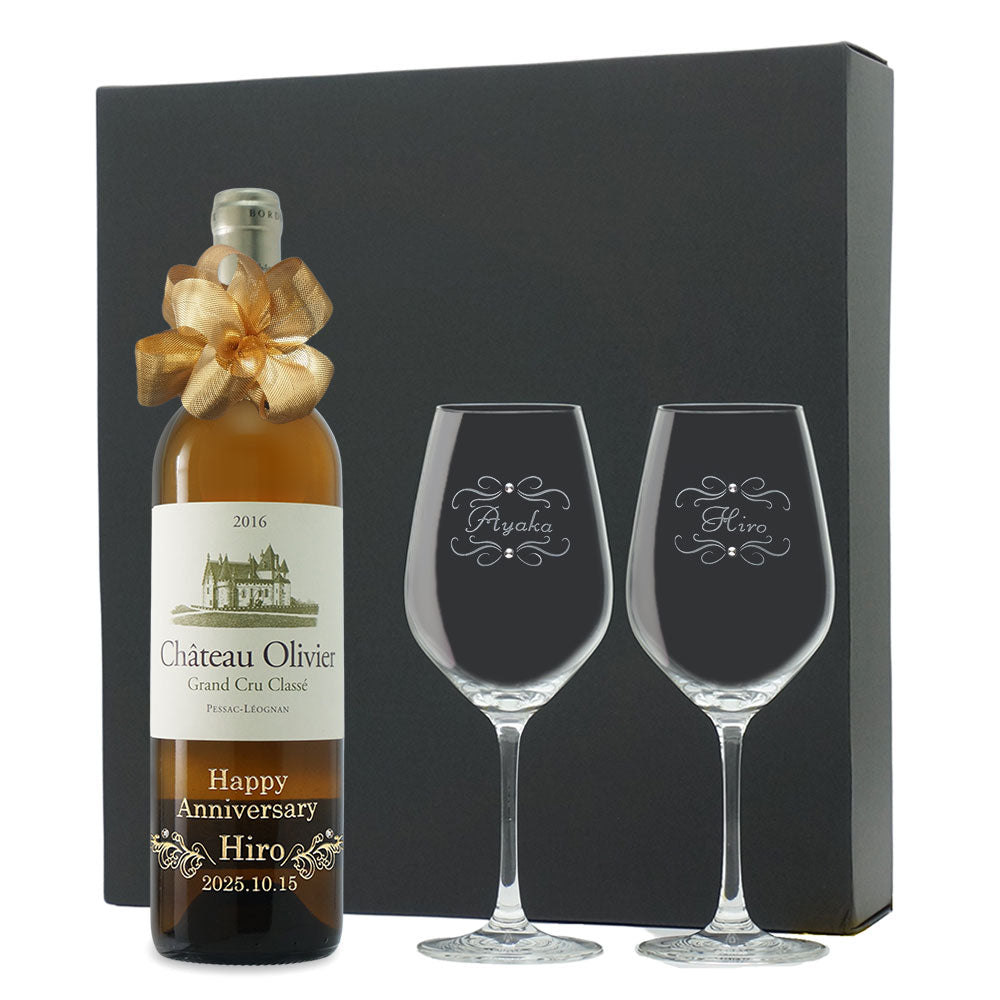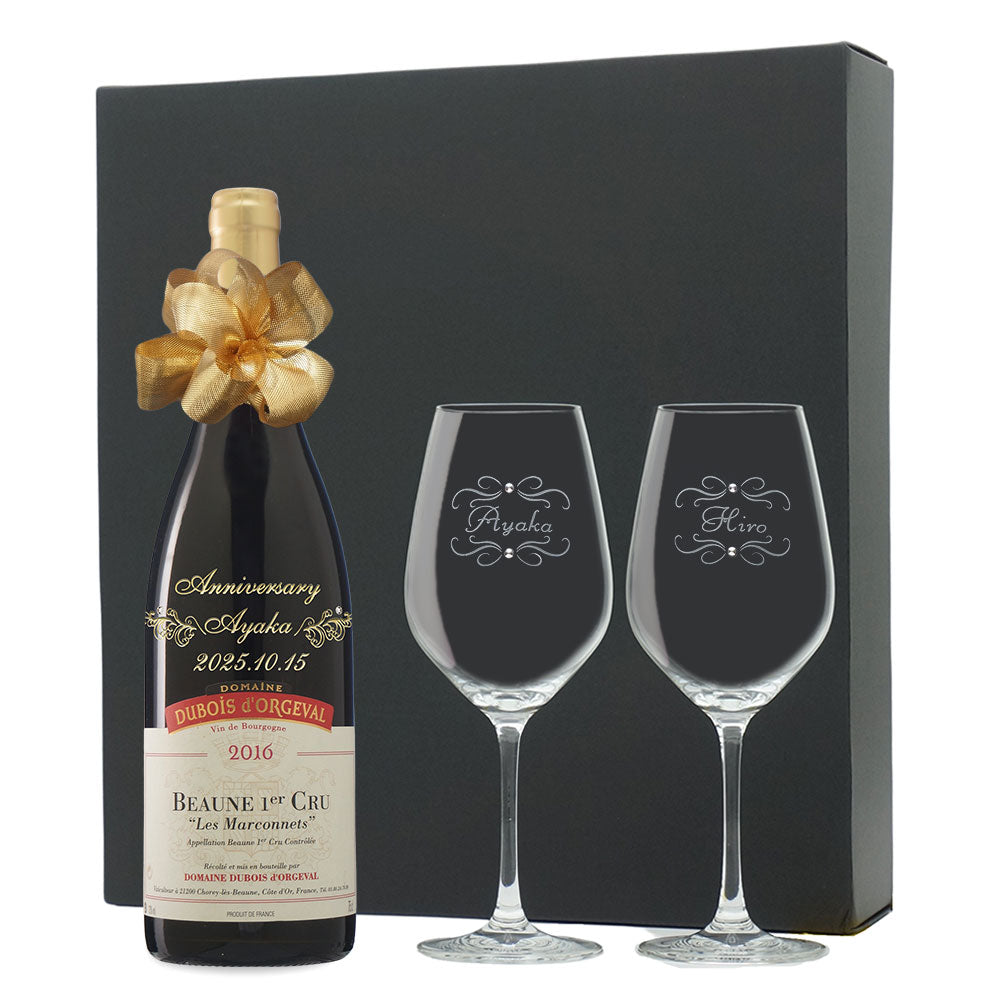 2016年に収穫されたブドウで作られた生まれ年ワインに、名前やメッセージを彫刻し、ペアグラスとともに贈るオーダーメイドギフト。心に残る、感動のプレゼントです。