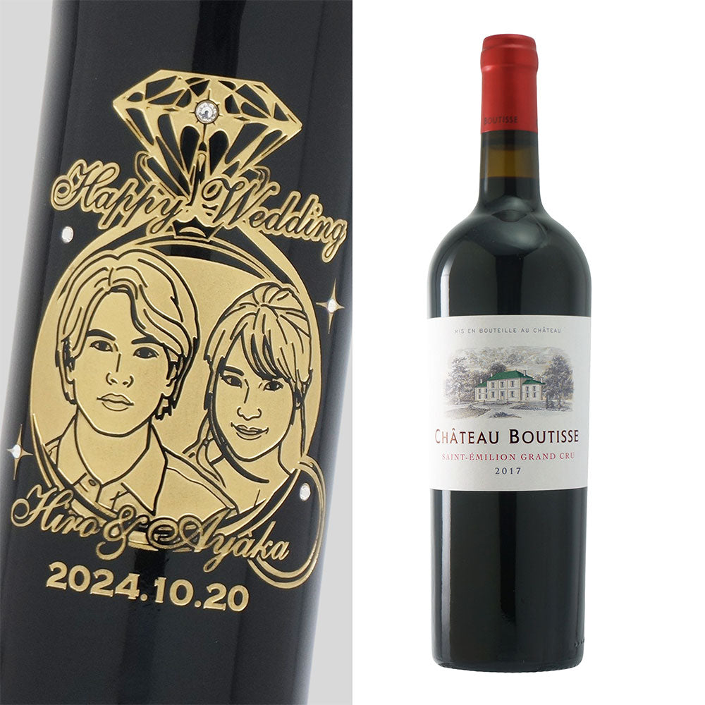 2017年 結婚記念年 / 誕生日 生まれ年ワイン 名前 似顔絵の彫刻 木箱入 平成29年