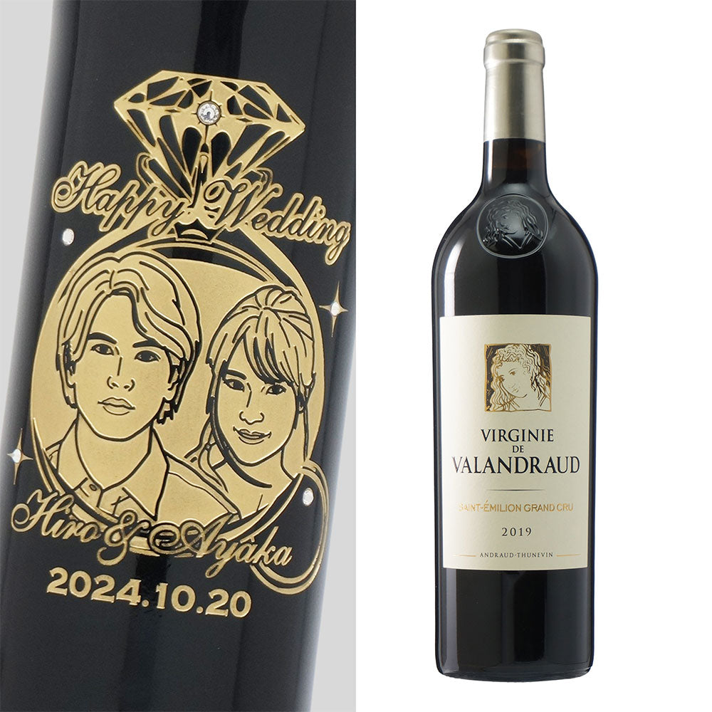 2019年 結婚記念年 / 誕生日 生まれ年ワイン 名前 似顔絵の彫刻 木箱入 平成31年/令和元年