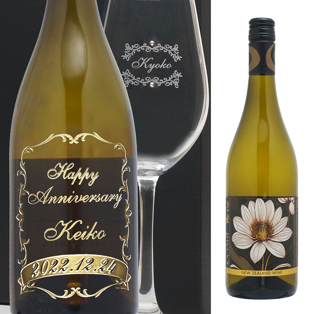 ボトルにメッセージ・名前・日付とワイングラスには名前を彫刻して唯一無二のオーダーメイドのオリジナルギフトを制作します。