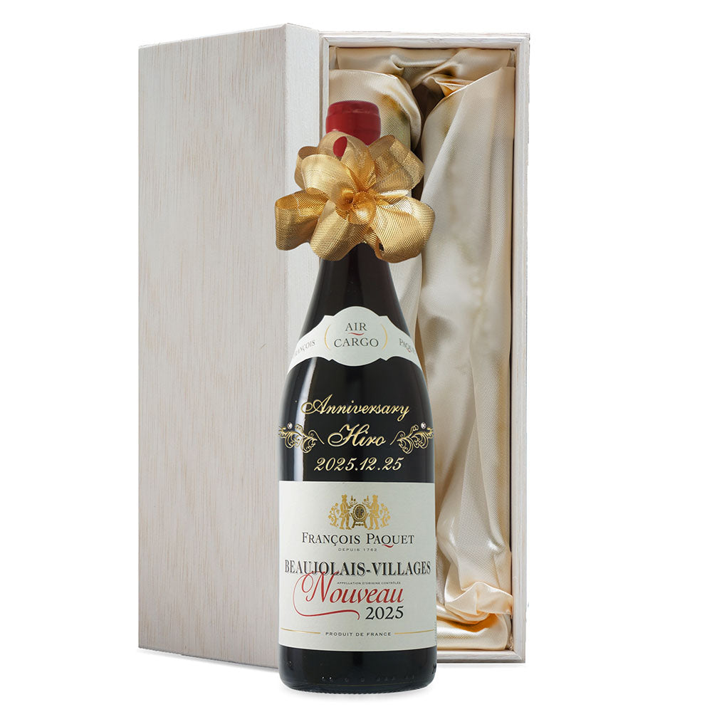 【予約受付:11/29以降にお届け】2025年 生まれ年ワイン ボジョレー ヌーヴォ 名前入り彫刻のお酒 令和7年 木箱入フランス産