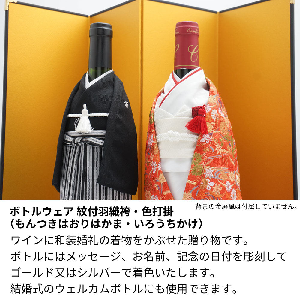 名前入り彫刻 結婚式ワイン 紋付羽織袴 色打掛 神戸ワイン 和装婚礼の紅白セット