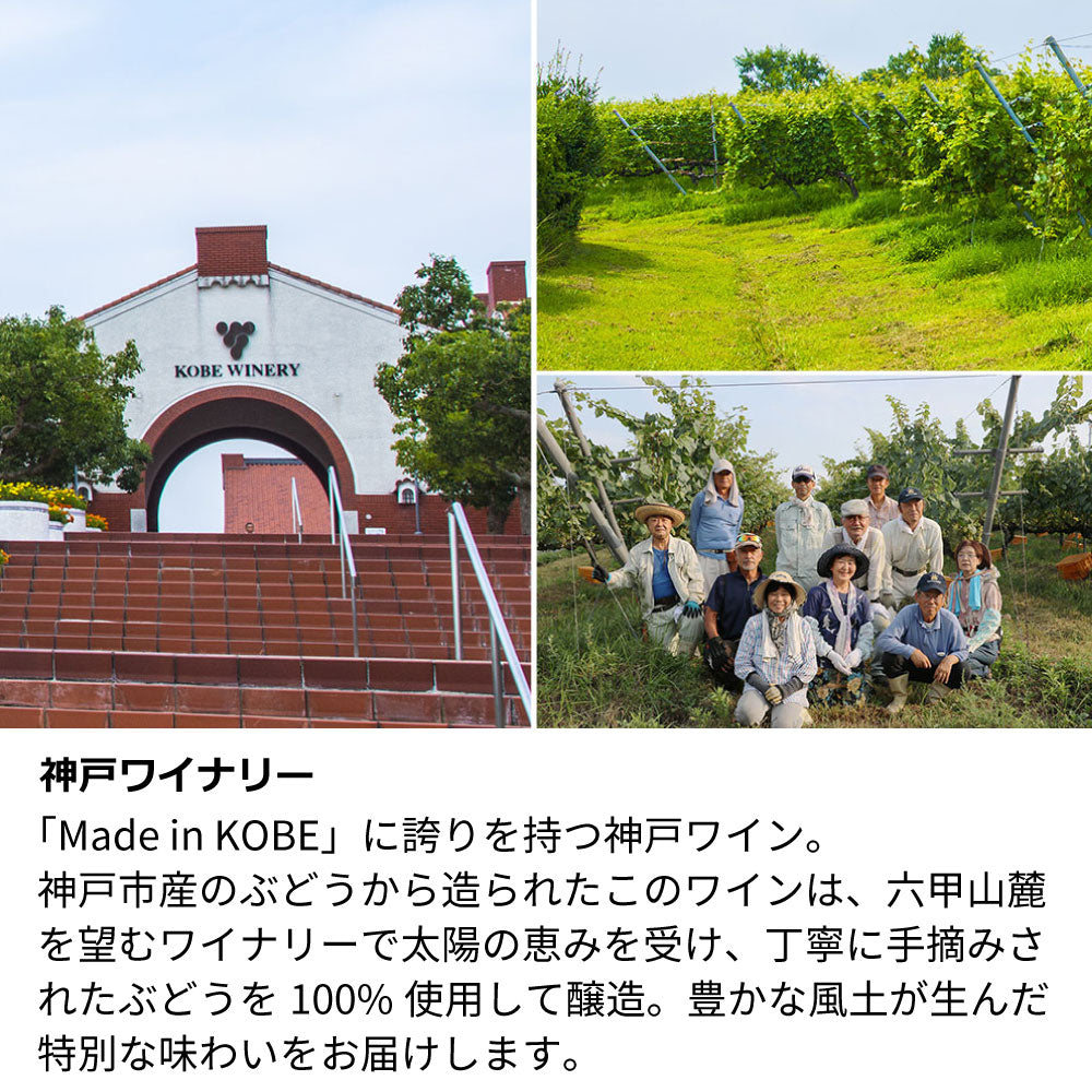 神戸ワインは、六甲山のふもとにある神戸の農場で栽培・収穫したブドウでつくられた”日本産ブドウ100%”のワインです。