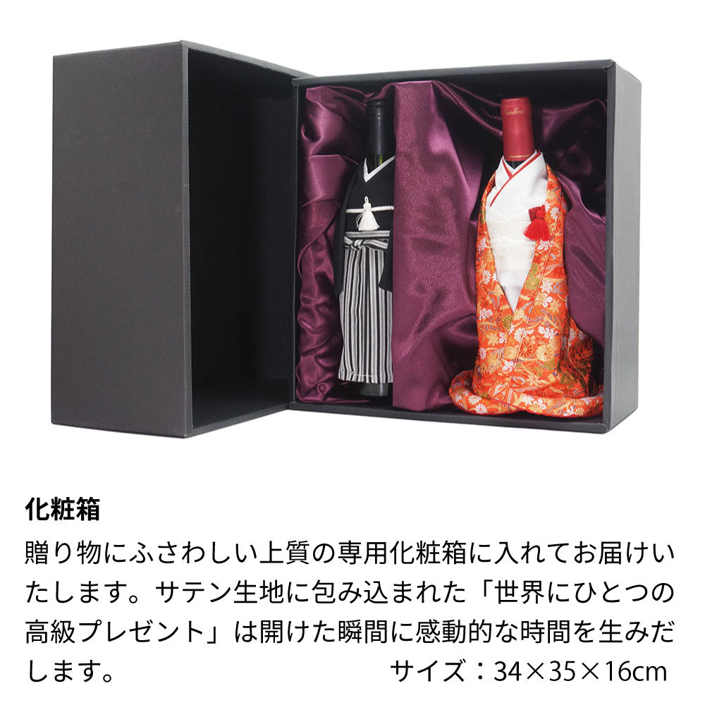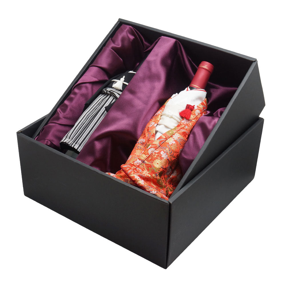 結婚祝い、記念日などの特別な日に、大切な人への贈り物としても最適です。和装の着物で着飾ったワインボトルは、贈る相手に感動を与えいつまでも忘れられないプレゼントになります。