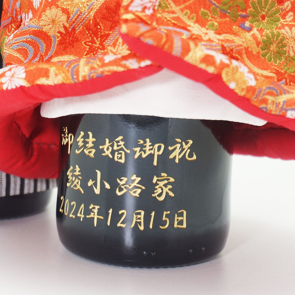 新郎新婦の門出を祝う結婚式で、この和装ワインボトルをウェルカムボードとして飾りましょう。伝統的な和装が会場の雰囲気を一層引き立て、特別な日を華やかに演出します。 - 特別な贈り物